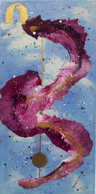 Und Oliver Heubeck mit abstrakten Bildern in Mixedmedia, die heilend und transformierend wirken können.